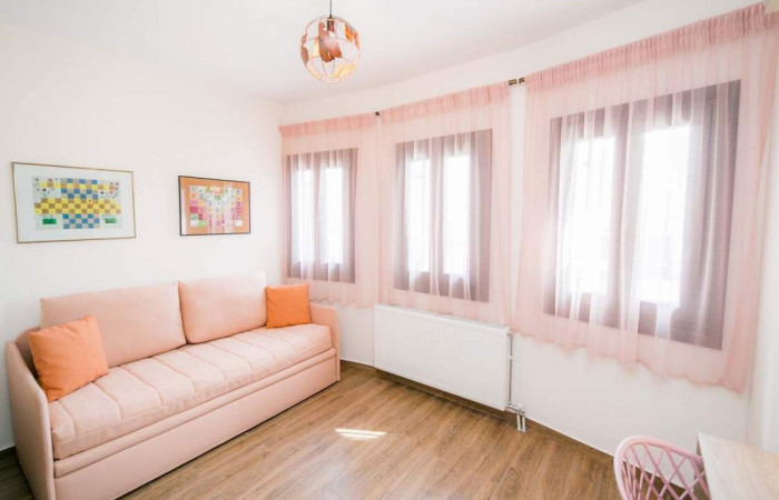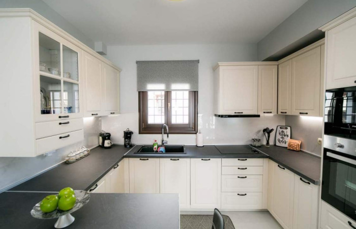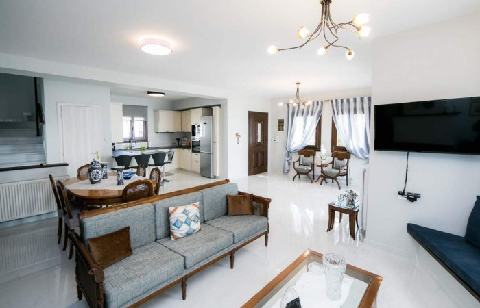 Η συνολική επιφάνεια του κτιρίου είναι 210 τ.μ. Η συνολική επιφάνεια της Bίλας είναι 135 τ.μ., 70 από αυτά στο υπερυψωμένο ισόγειο και άλλα 65 τ.μ στον πρώτο όροφο. Χρωματιστές λεπτομέρειες πάνω σε λιτά αρχιτεκτονικά στοιχεία, διακριτική πολυτέλεια, απίστευτη θέα στη θάλασσα, αυτό το πανέμορφο Beach House είναι εδώ για να ζήσετε τις διακοπές των ονείρων σας.