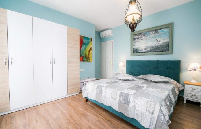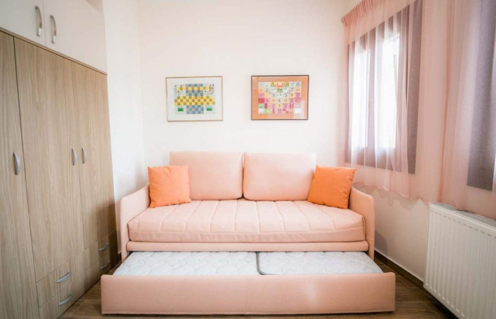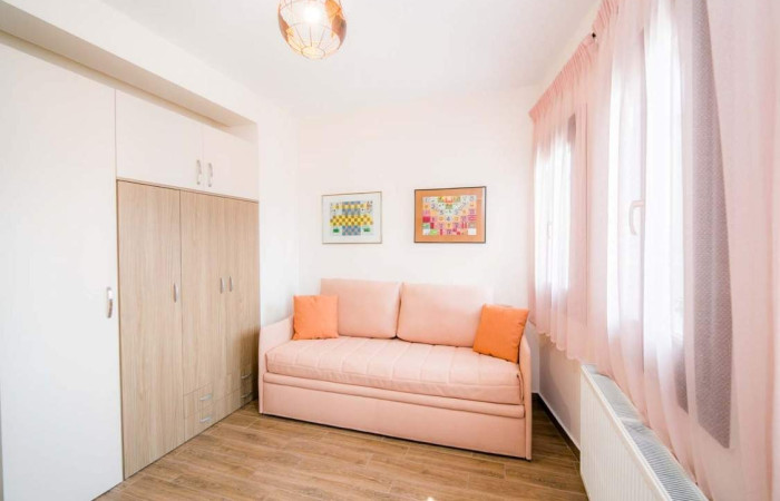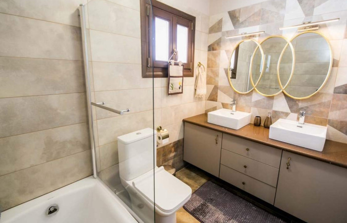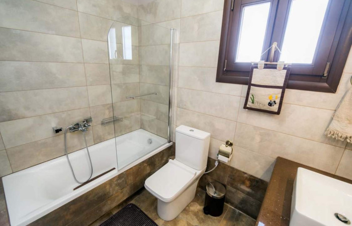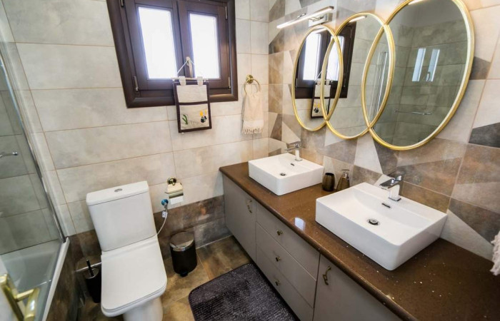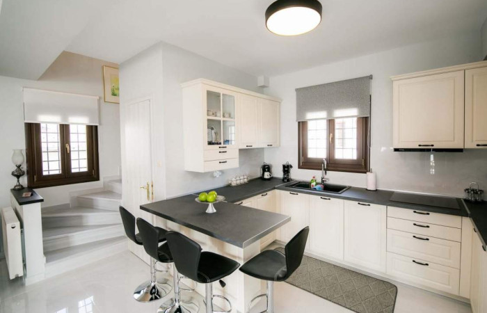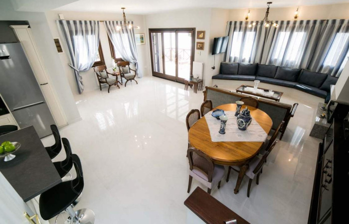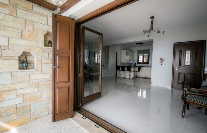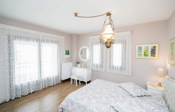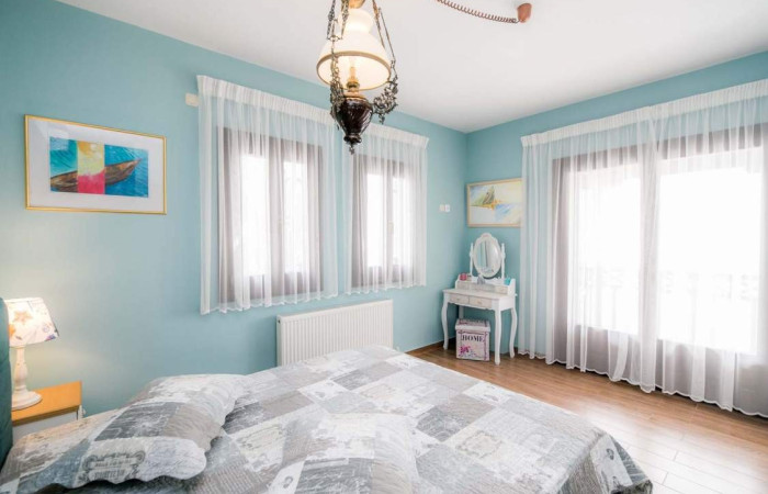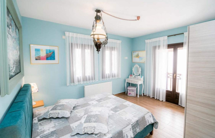 Μια πολύ φιλική και κομψή σκάλα μας οδηγεί από το σαλόνι στον πρώτο όροφο, με τα τρία ηλιόλουστα και ευρύχωρα υπνοδωμάτια και το μεγάλο μπάνιο. Έξω από τα υπνοδωμάτια, υπάρχουν δύο σκεπαστές βεράντες, ενώ στον κάτω όροφο συναντάμε επίσης τη φανταστική σκεπαστή βεράντα με θέα στη θάλασσα. Ξυπνήστε κάθε πρωί, ανοίξτε τα μάτια σας, στην καταπληκτική θέα του Παγασητικού!