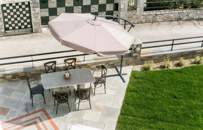 Ο εξωτερικός χώρος καθιστικού περίπου 500 τ.μ., με ανεμπόδιστη θέα στη θάλασσα και την παραλία, προσφέρει μια απίστευτη εμπειρία χαλάρωσης. Υφές όπως ξύλο, γρασίδι και πέτρα σε συνδυασμό με την φυσική βλάστηση του καταπράσινου κήπου, προσφέρουν μια εξωτική αίσθηση πολυτέλειας.Είτε ταξιδεύετε με τους φίλους σας, είτε με την οικογένεια σας, είτε φιλοξενείτε μια άλλη οικογένεια, θα αξιοποιήσετε πλήρως τις εγκαταστάσεις για πραγματικά αξέχαστες διακοπές.